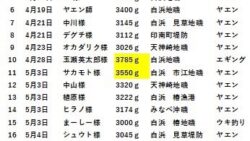 釣果 3kupアオリイカたくさん釣れており、一覧にして店頭に貼り出しています。