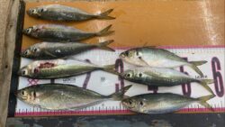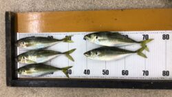 波止釣り・サーフ釣り釣果 1/9尺アジクラス7匹の釣果。早朝に田辺堤防でカゴ釣り