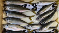 波止釣り・サーフ釣り釣果 12/20 新芳養漁港にて尺アジ30~40㎝6匹の釣果