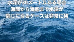 釣り考察 水深が30メートルあるとした場合、海面から海底まで水温が同じというケースは何%くらいある?通常は何段かに分けて変わることが多い?