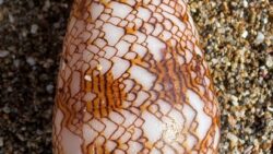 海の観察 この綺麗な貝殻はアンボイナガイ。強力な毒(コノトキシン)を持っています。