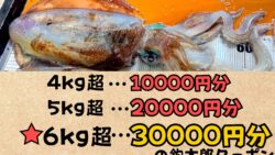 お知らせ 伝説級の超大型サイズ 6kgのアオリイカ持ち込みで3万円分の釣太郎クーポン進呈です。