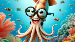 お知らせ chatGPTに、一見して面白く、笑いを誘うアオリイカの絵を描いて、としたら