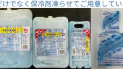 お知らせ 氷と共に保冷剤も各種凍らせてご用意しています。