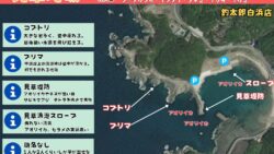 釣具、エサ紹介 アオリイカの魚影が濃い、白浜町見草(みぐさ)堤防&地磯釣り場紹介地図。