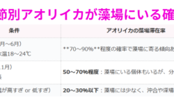 アオリイカ生態、釣り情報関連 藻場にアオリイカがいる確率は「季節」「水温」「産卵期」次第