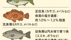 魚のアレコレ 海水魚の体内の塩分濃度は、種類によって異なります。