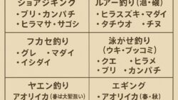 釣り考察 南紀エリア「釣法別ターゲット魚種」早見表