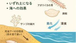 雑学 ビーチの砂は、主に岩石や貝殻、生物の殻が長い時間をかけて細かく砕かれたもので構成されています。