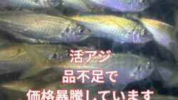 お知らせ 今しがたアジ業者から電話があり「2000匹ならある」とのこと。