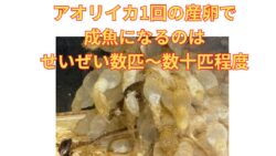アオリイカ生態、釣り情報関連 アオリイカは1回の産卵で約5,000~10,000個の卵を産みますが、そのすべてが成長して成魚(釣れるサイズ)になるわけではありません。