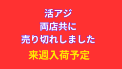 お知らせ 活アジ売り切れました! 両店共に。来週入荷予定です