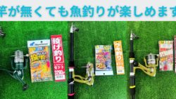 釣具、エサ紹介 手ぶらで気が向いた時に、魚釣りが楽しめるように「竿、リール、仕掛けセット」ご用意しています。