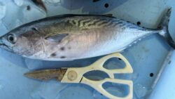 お知らせ 今回遊し釣れているスマ(ヤイトガツオ)は20から30センチ程度の仔魚。