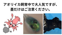 水槽の魚 アオリイカの赤ちゃんが、ぎこちなく不安定な泳ぎをしています。卵から孵化して数日はこんなもの。