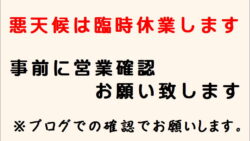 お知らせ お天気が落ちの場合、ブログ、ホームページで営業の有無ご確認ください。