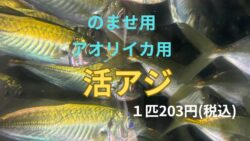 お知らせ 活アジ(アオリイカ&のませ)あります。1匹203円(税込)。