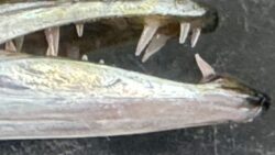 雑学 典型的な肉食魚の歯を持つカマス。これで活魚に食らい付きます。釣った後処理はご注意ください。