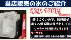 お知らせ 釣った魚を冷やす氷はペット氷、バラ氷、ブロック氷、海水氷をご用意しています。