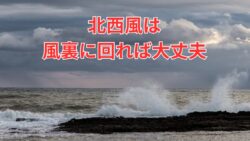 釣り考察 和歌山南紀地方で北西風が吹くと、風裏に回れば凪(波が穏やか)になる理由は、地形の特徴と風の性質にあります。