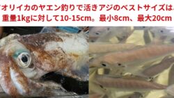 アオリイカ生態、釣り情報関連 アオリイカのヤエン釣りで活きアジの最適サイズは?