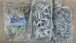 釣り考察 スルスルスルルー釣り用マキエサに人気のイワシブロック、スライス、キビナゴブロックは、解凍予約できます。和歌山の夏はモンスターフィッシュ釣りが人気。