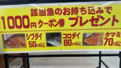お知らせ シブダイ50㎝、コロダイ60cm、タマミ70cm釣果お持ち込みで、1000円クーポン券プレゼント!