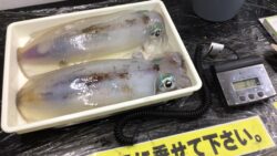 アオリイカ釣果 4/12(日)べべ様 アオリイカ2杯で3150g 磯間漁港 ヤエンにて