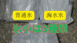 お知らせ バラ氷、ブロック(普通氷と海水氷)。氷小180円は3種あります。釣り魚は冷やして、美味しく食べましょう。