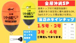 釣具、エサ紹介 全層沖縄SP、カン付きウキ。大物魚釣りの定番浮き。夏はモンスターフィッシュを狙う季節。