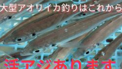 お知らせ 活けアジ売れており、本日も入荷しました。アオリイカ釣りは、まだまだこれからです。