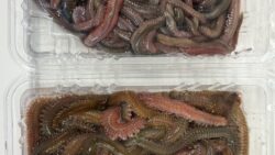 釣りビギナー 左が青イソメで太くて独特の匂いがあり、暗闇で光るので夜釣りに最適。右は石ゴカイ。【虫エサ特徴紹介】