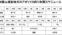 釣り考察 和歌山南紀地方のアオリイカの生育状態を、一年間の表に示して説明ます。。