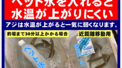 お知らせ バケツ10ℓに入れれるアジは10匹まで。詰め過ぎると酸欠で、全部死んでしまうことがあります。