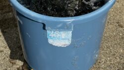 釣り考察 このバケツに100匹ほどアジが入ります。これをバケツリレーで水槽へ運んでいます。
