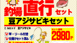 釣場直行豆アジサビキ釣りセット。今釣れています。竿が無くても、これがあれば大丈夫。