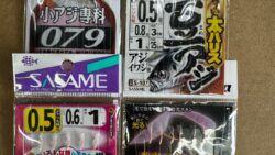 豆アジ釣りのシーズンが始まっています。出足は針0.5号からスタート。店頭に在庫あります。