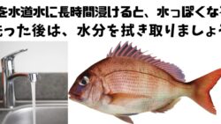 海水魚調理時に真水に浸すと、水分を吸収し水っぽくなるので、洗った後はキッチンペーパーで拭き取りましょう。
