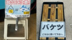 活アジ購入時は、所定の場所にバケツを置き、蓋を開けてください。