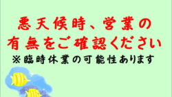 お知らせ 雨天時は臨時休業となります。ご了承ください。