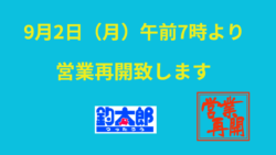 お知らせ 9月2日(月)午前7時より、営業再開いたします。