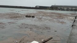 未分類 台風等で海が時化ると、漁港内には大量の木っ端や海草、ごみが流れ込んできます。