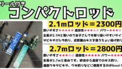 お知らせ コンパクト竿リールセットは2.1と2.7Mの2種類。夏休みに非常に売れています。暑いので1時間だけ、久しぶりに魚釣りしませんか?
