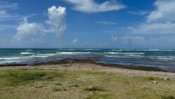 お知らせ 台風10号ははるかかなたですが、それでも白波が立っています。午前10時過ぎ撮影。