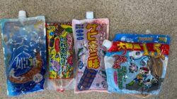 釣具、エサ紹介 解凍不要ですぐに使える常温アミエビのチューブタイプ。バケツ杓不要で大人気。(ファミリーフィッシングエサ紹介】