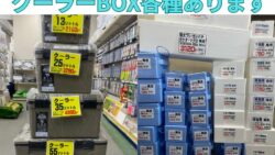 お知らせ 夏休みによく売れるクーラーボックスは、ハードと発砲があり、サイズもいろいろ。