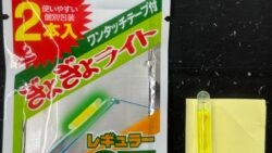 未分類 テープ付きのケミホタルは「ぎょぎょライト・レギュラー37」太さに関わらず、竿先に取り付けれます。【夜釣り入門】