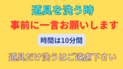 お知らせ 道具を洗う場合は、一言声をかけてください。