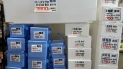 お知らせ 魚を入れる発泡クーラーボックスは、イワシから大型マグロ迄、各サイズご用意しています。