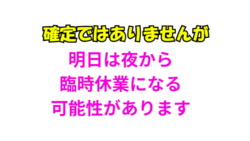 お知らせ 天気予報が定まりません。明日は夜から臨時休業になる可能性があります。